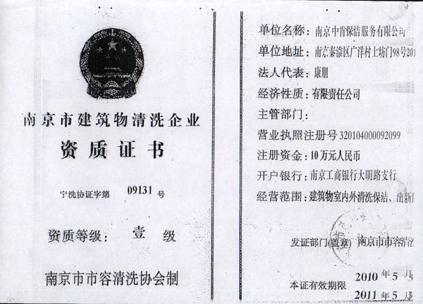 南京保潔公司注冊(cè)資金10萬(wàn)元,是江蘇省家庭服務(wù)協(xié)會(huì)會(huì)員單位,江蘇省家政服務(wù)業(yè)分類(lèi)執(zhí)行標(biāo)準(zhǔn)起草制定單位,先后被評(píng)為江蘇誠(chéng)信服務(wù)先進(jìn)單位、南京是家政服務(wù)定點(diǎn)培訓(xùn)單位、南京市十佳建筑物清洗企業(yè)、南京市誠(chéng)信示范單位、南京市鼓樓區(qū)三信三優(yōu)單位。董事長(zhǎng)康朋是江蘇省家庭服務(wù)業(yè)協(xié)會(huì)副會(huì)長(zhǎng)、江蘇省家政服務(wù)分類(lèi)執(zhí)行標(biāo)準(zhǔn)主要起草人。